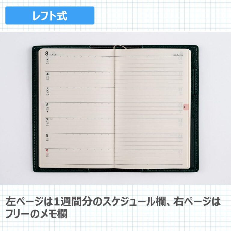 左ページに1週間のスケジュール、右ページにメモ欄。